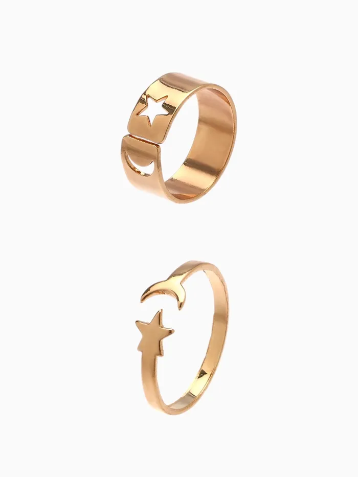 Набор колец 2 штуки «Неразлучники» лунная ночь, цвет золото, безразмерные
