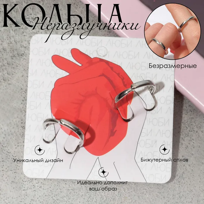 Набор колец 2 штуки «Неразлучники» минимализм, цвет серебро, безразмерные — Характеристики