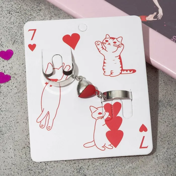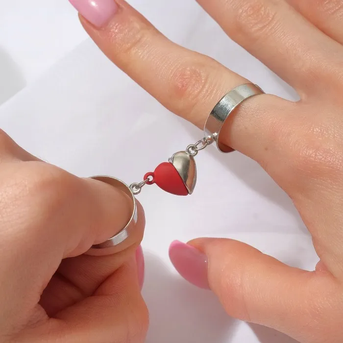 Набор колец 2 штуки «Неразлучники» на магните, сердце, цвет красно-серебряный, безразмерные — Характеристики
