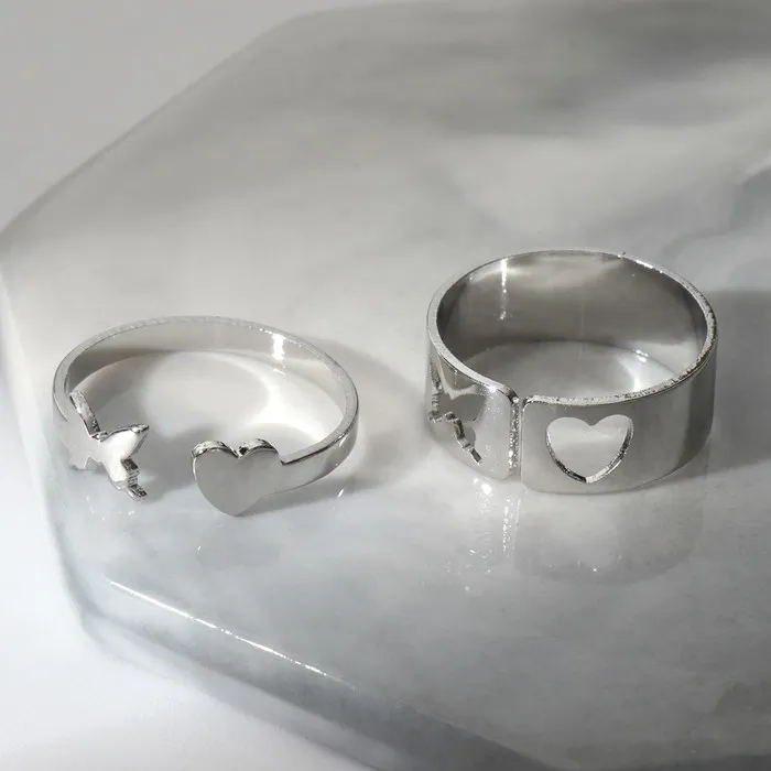 Набор колец 2 штуки «Неразлучники» нежность, цвет серебро, безразмерные — Характеристики