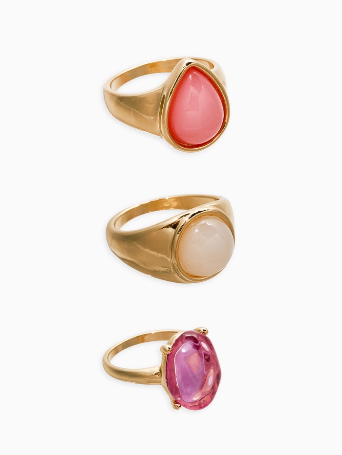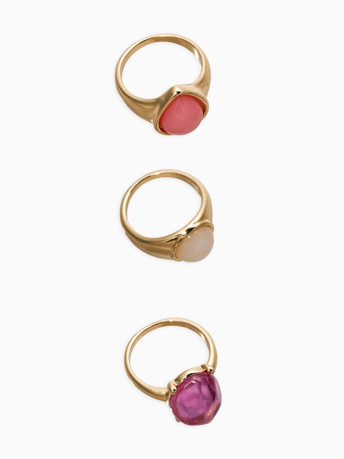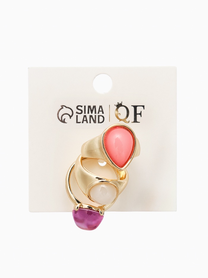 Набор колец 3 шт "Новый стиль" кабашоны, размер МИКС, цвет розовый в золоте — Характеристики