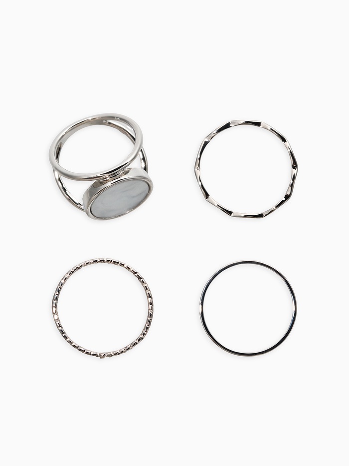 Набор колец 3 шт "Новый стиль" линии, размер МИКС, цвет белый в серебре — Характеристики