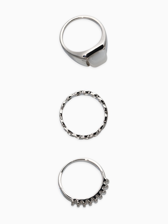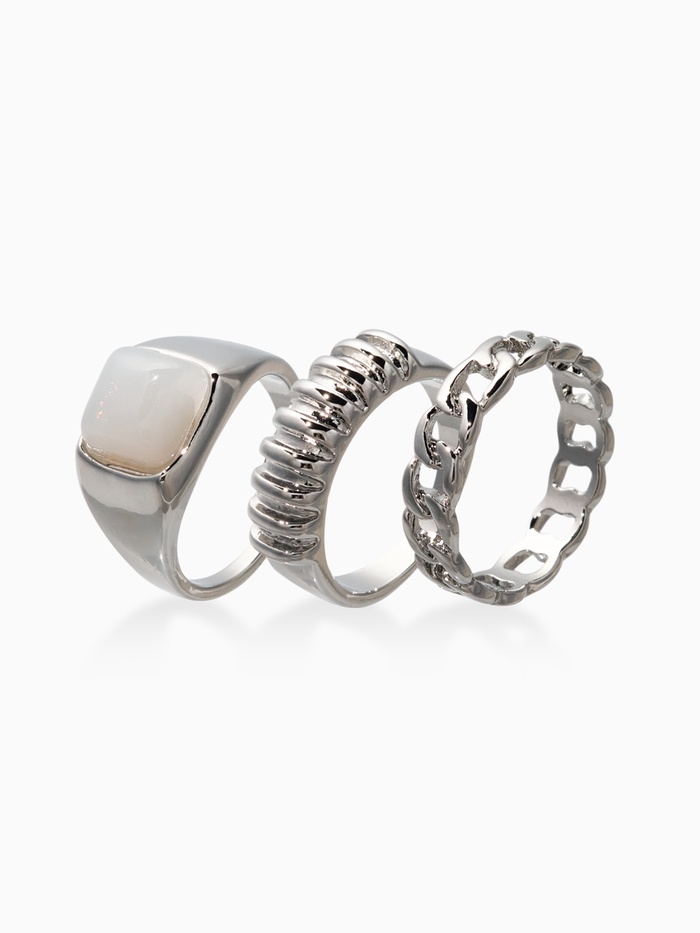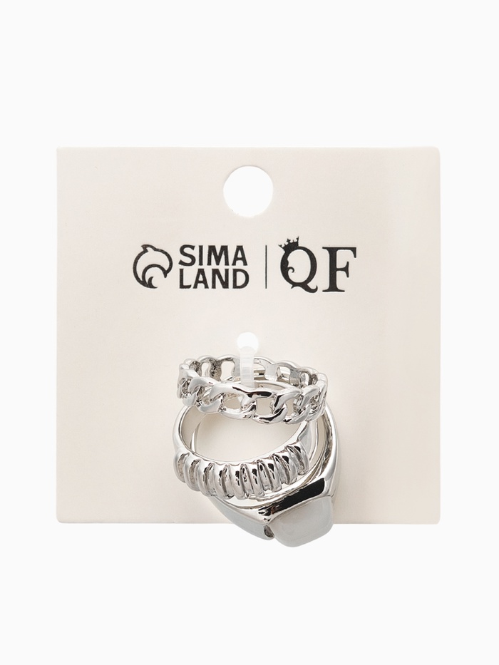 Набор колец 3 шт "Новый стиль" цепь, размер МИКС, цвет белый в серебре — Характеристики
