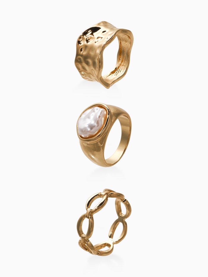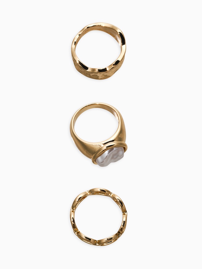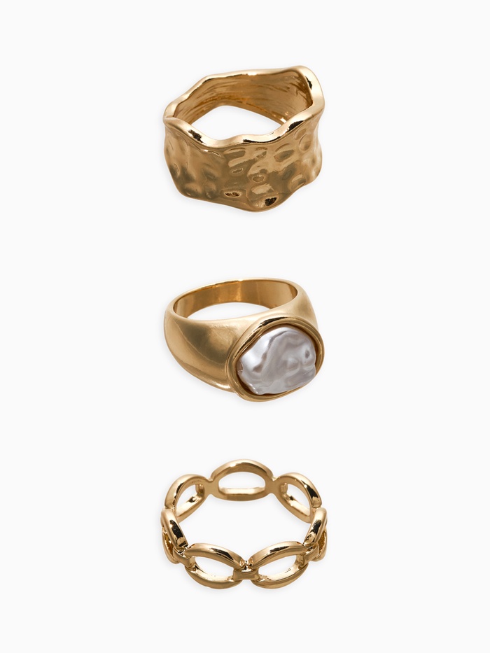 Набор колец 3 шт "Новый стиль" жемчуг,цепь, размер МИКС, цвет белый в золоте — Характеристики