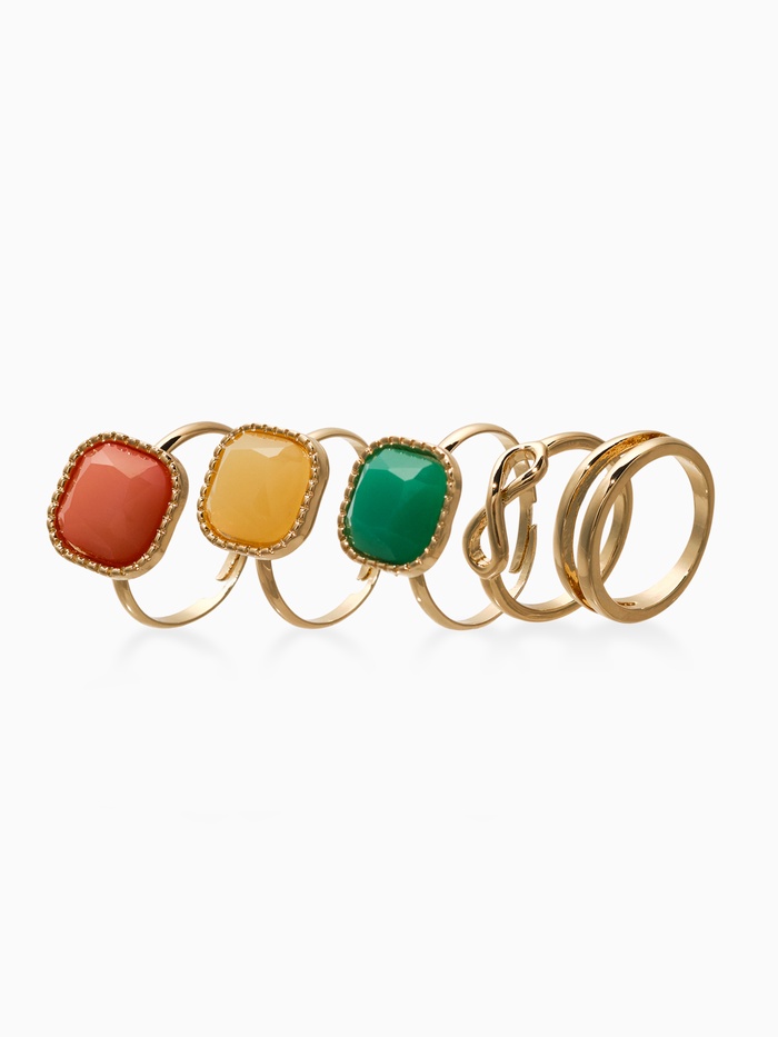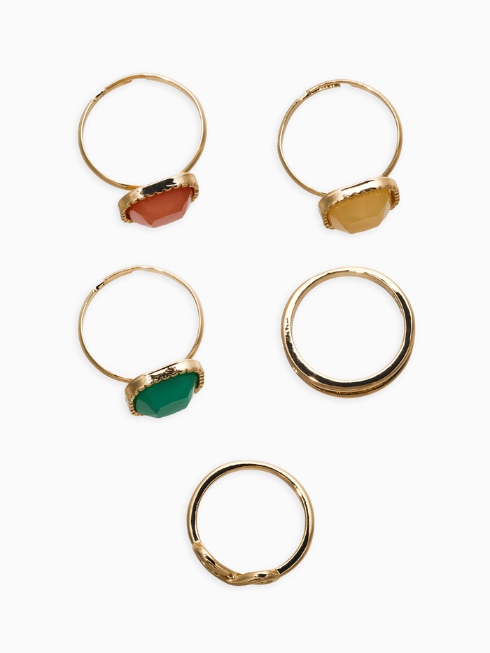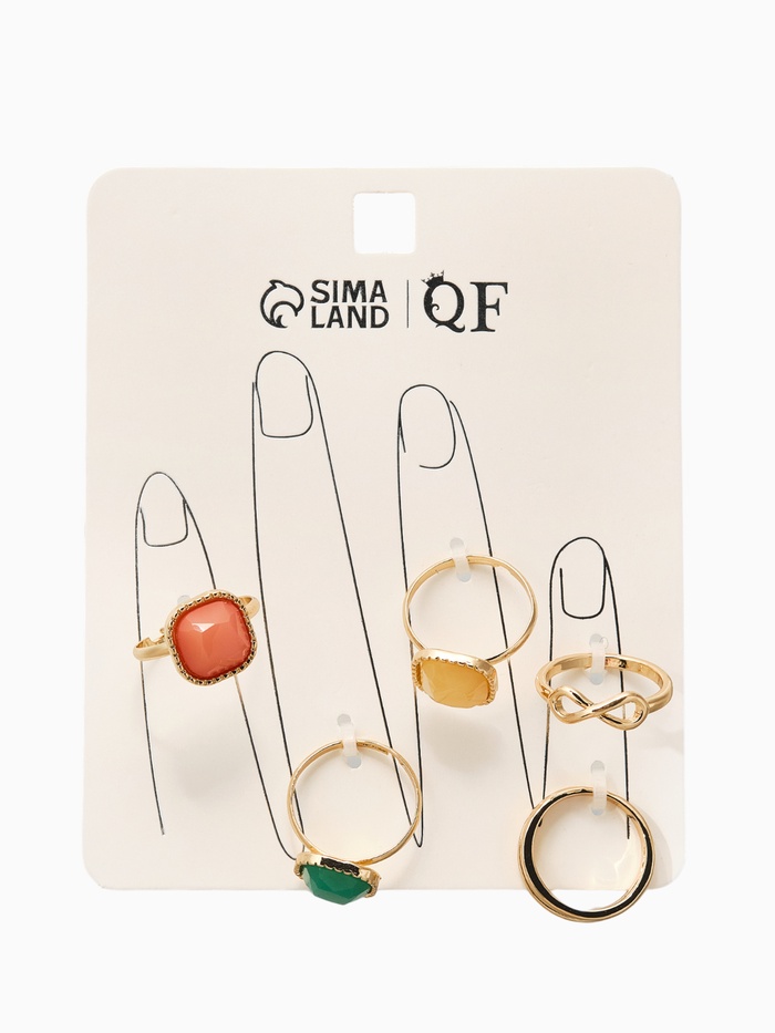 Набор колец 5 шт "Новый стиль" камни, размер МИКС, цветной в золоте — Характеристики