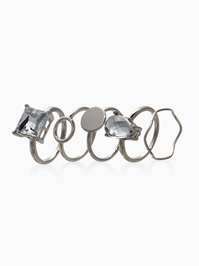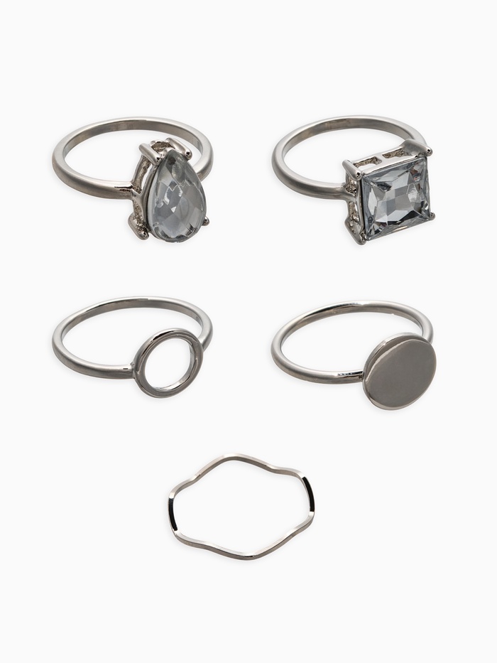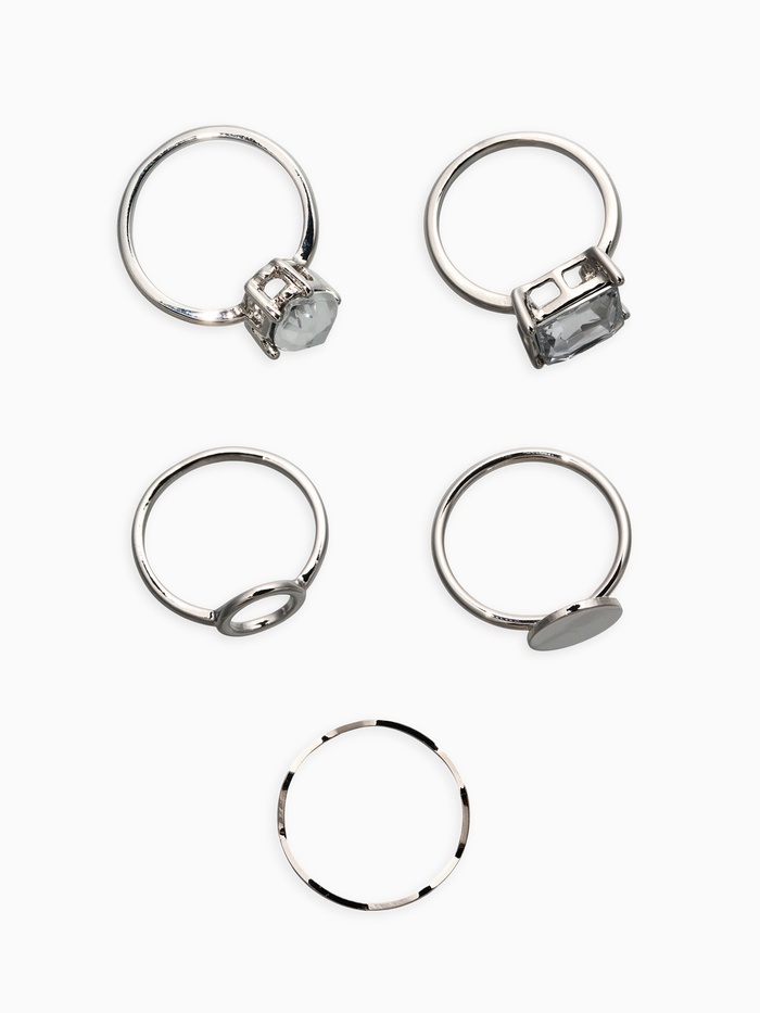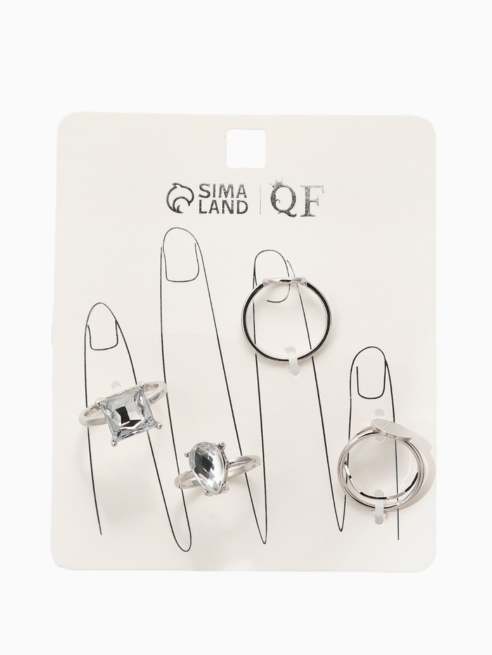 Набор колец 5 шт "Новый стиль" кристалл, размер МИКС, цвет белый в серебре — Характеристики