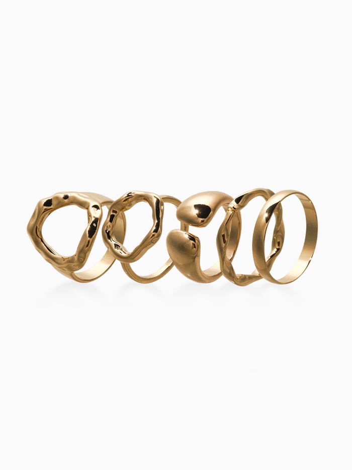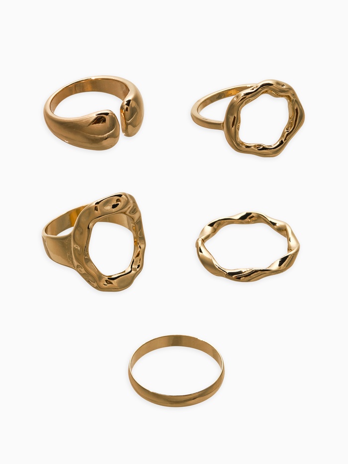 Набор колец 5 шт "Новый стиль" мятый, размер МИКС, цвет золото — Характеристики