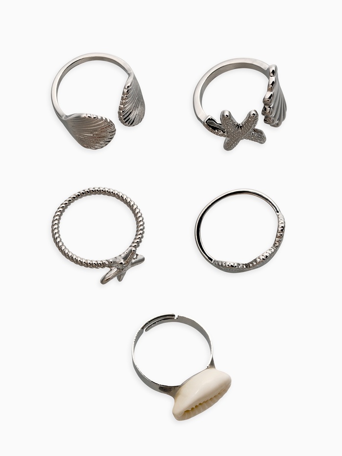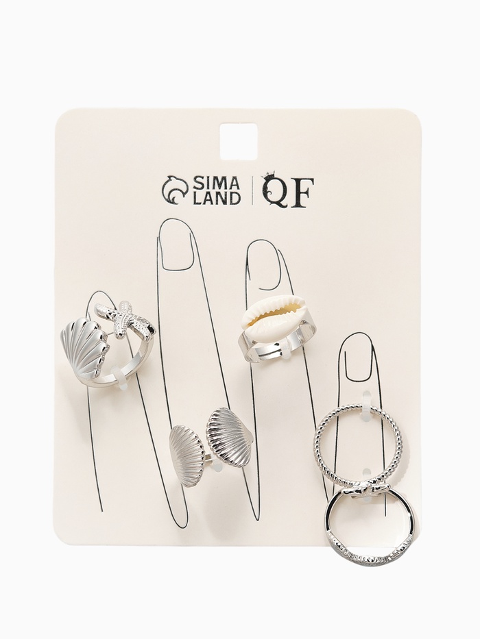 Набор колец 5 шт "Новый стиль" море, размер МИКС, цвет белый в серебре — Характеристики
