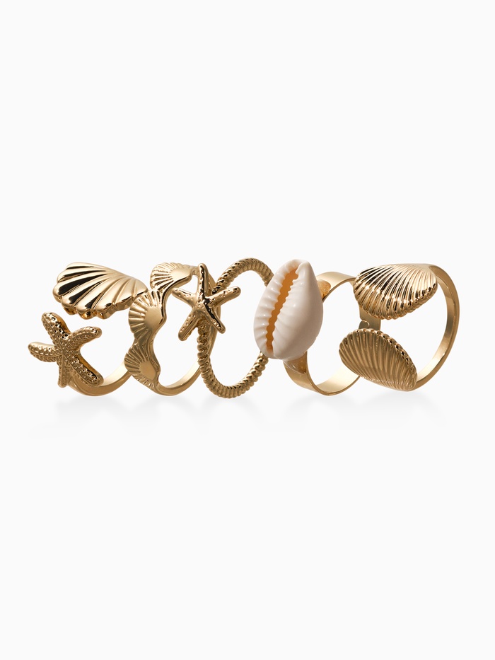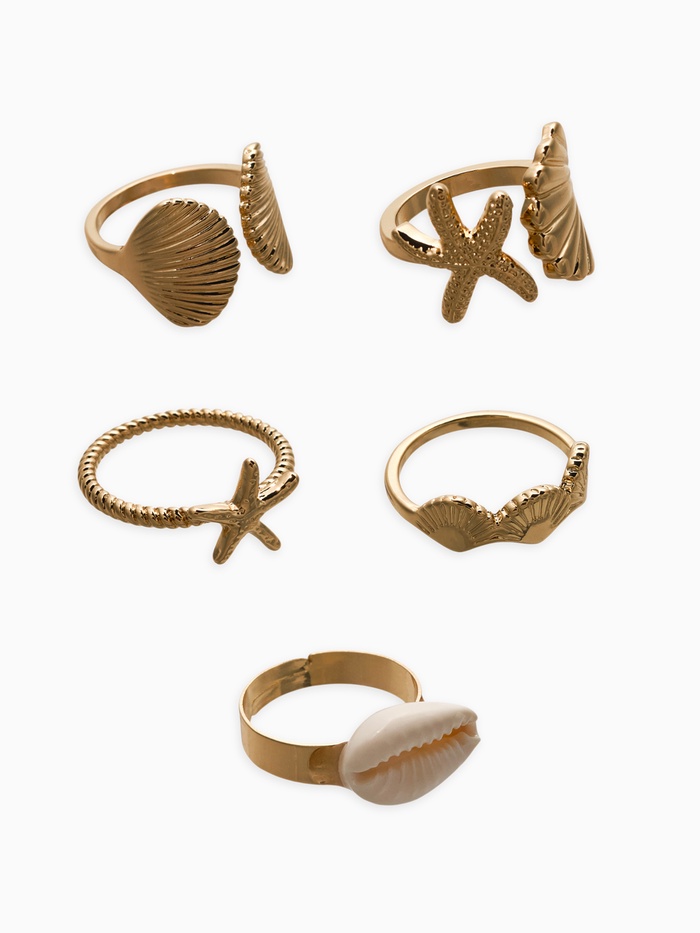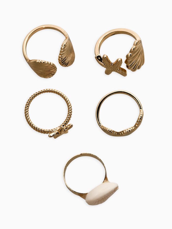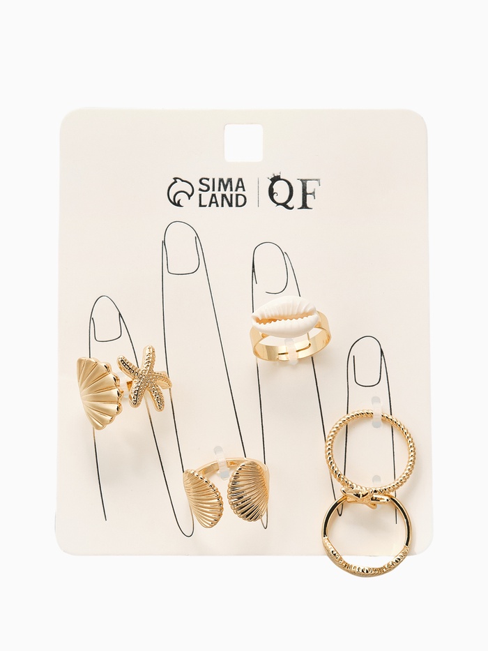 Набор колец 5 шт "Новый стиль" море, размер МИКС, цвет белый в золоте — Характеристики