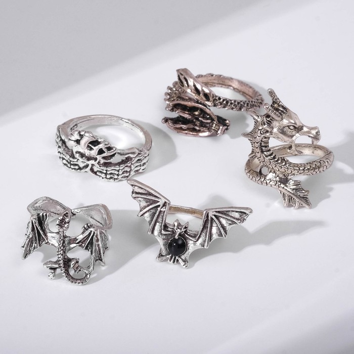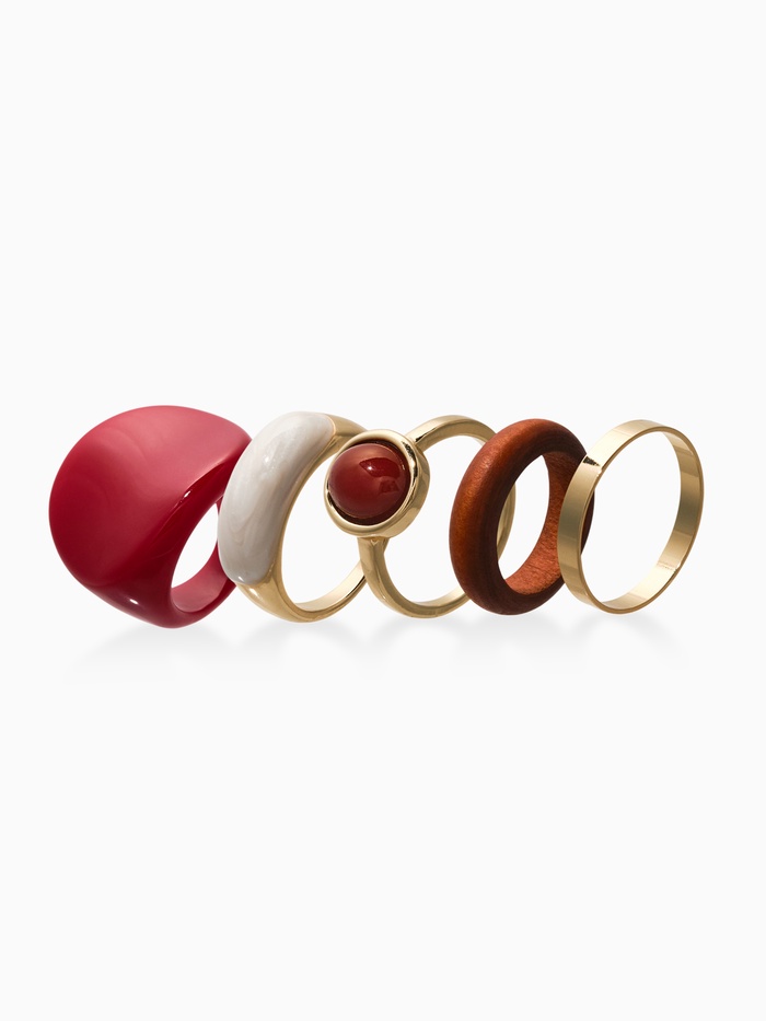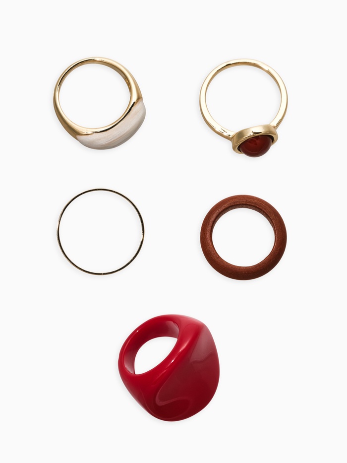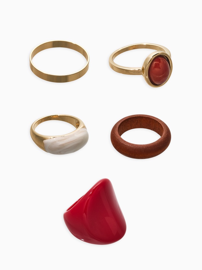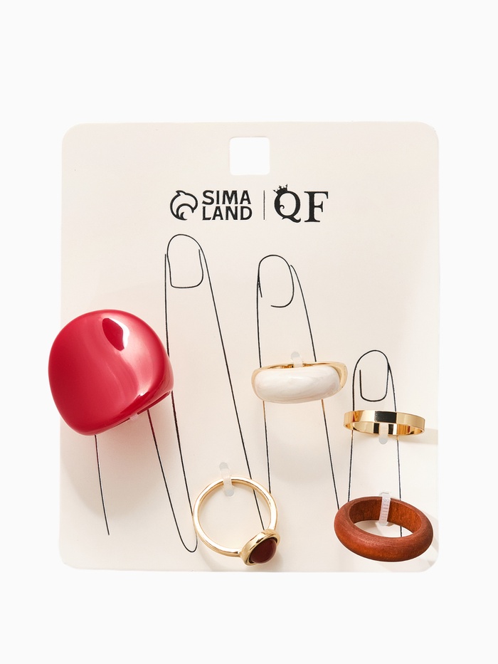 Набор колец 5 шт "Новый стиль" овал с деревом, размер МИКС, цвет красно-белый в золоте — Характеристики