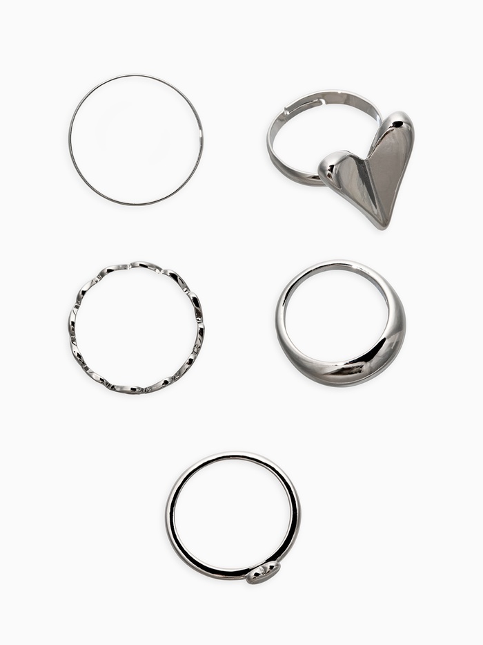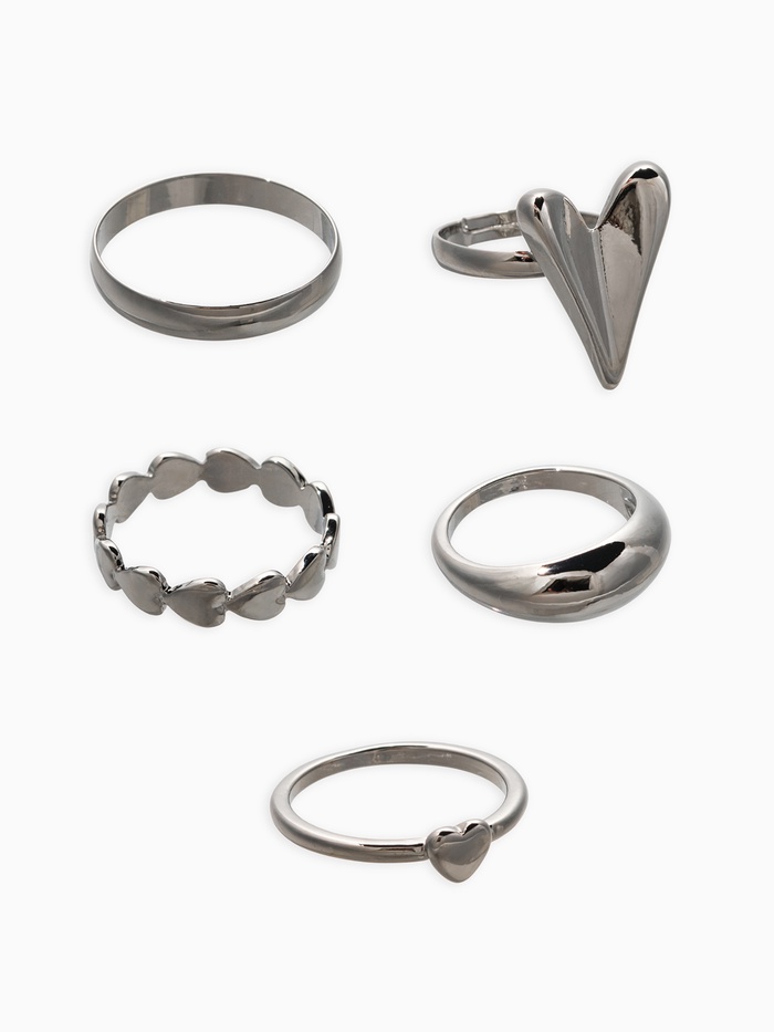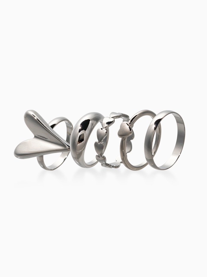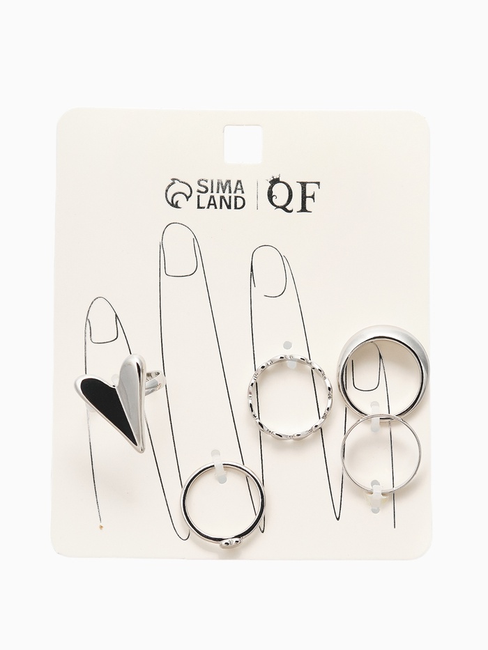 Набор колец 5 шт "Новый стиль" сердечки, размер МИКС, цвет серебро — Характеристики