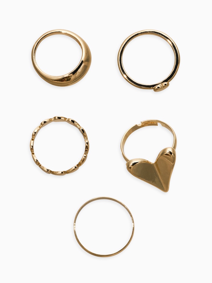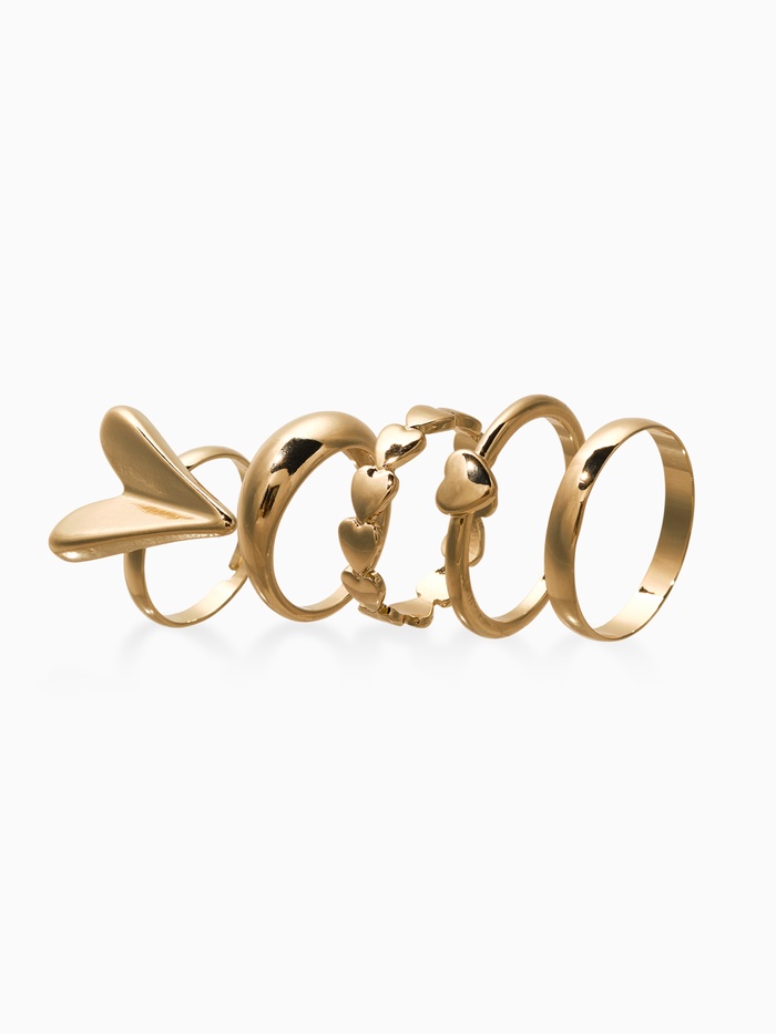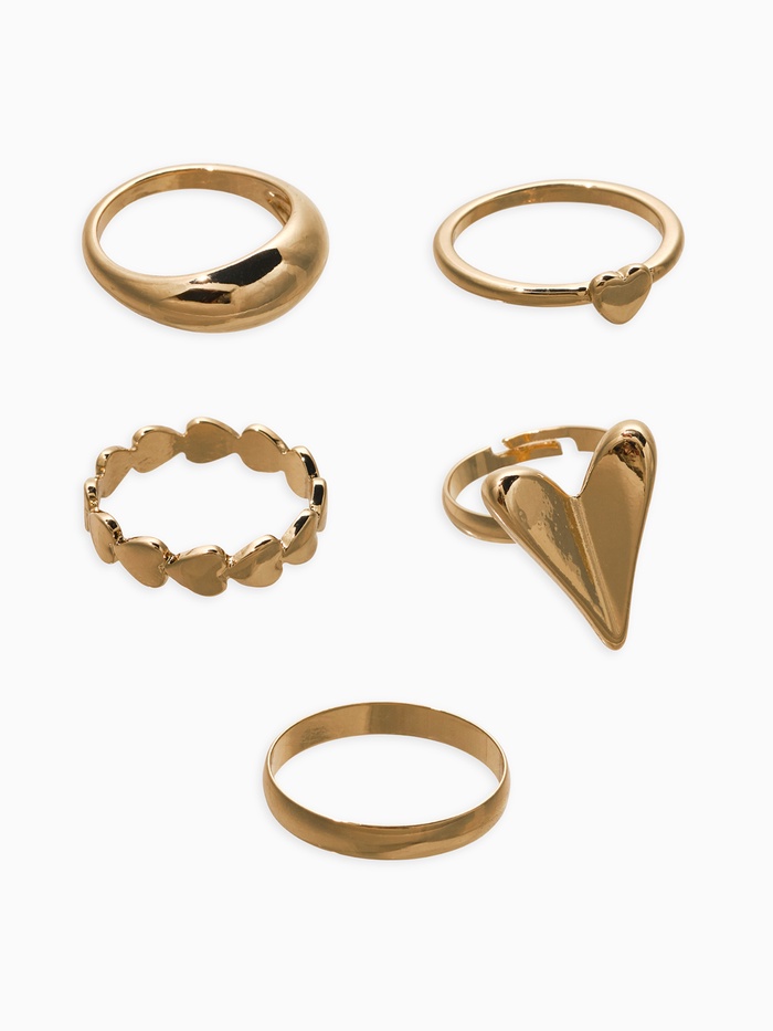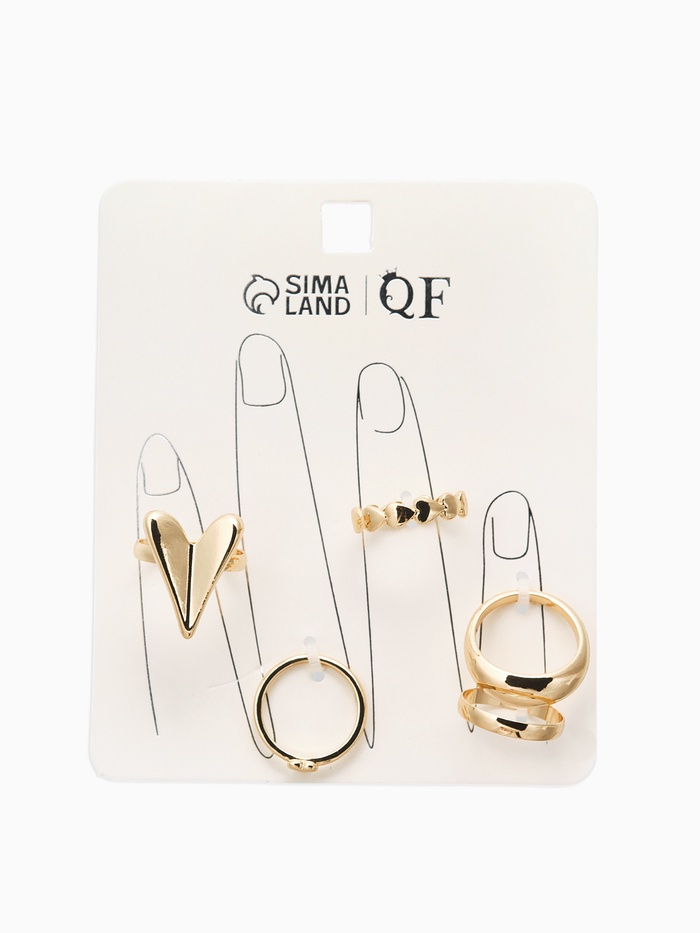 Набор колец 5 шт "Новый стиль" сердечки, размер МИКС, цвет золото — Характеристики