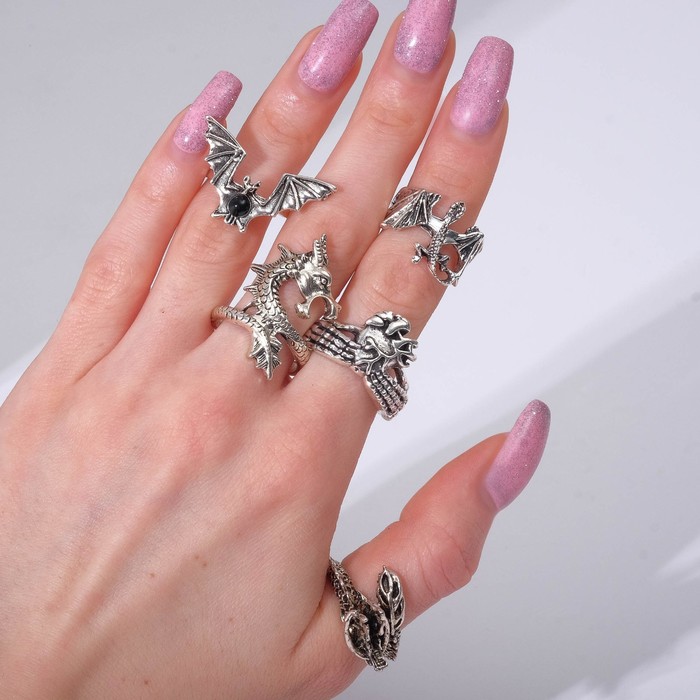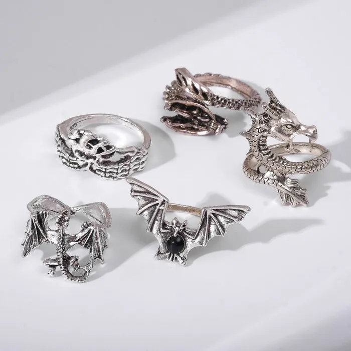 Набор колец 5 штук «Драконы», размер МИКС, цвет чернёное серебро — Характеристики