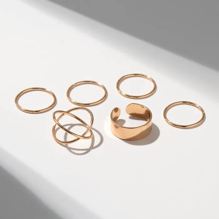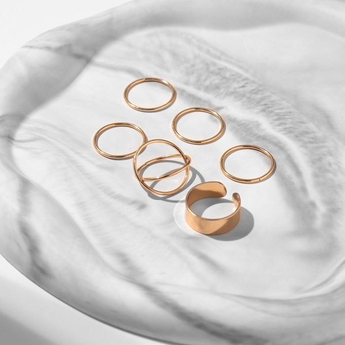 Набор колец 6 штук «Тренд» линия, цвет золото, размер 17 — Характеристики
