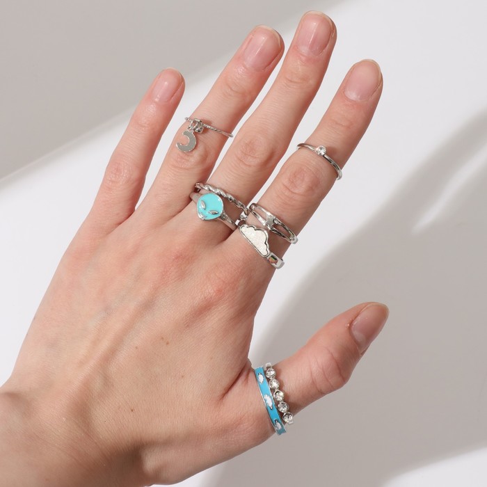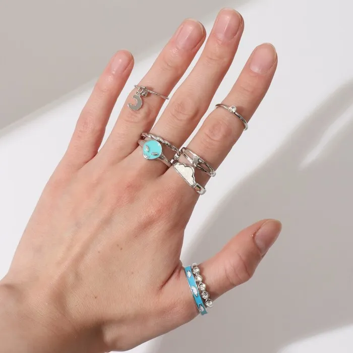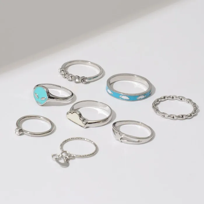 Набор колец 8 штук «Инопланетяне», цветной в серебре, 13 размер — Характеристики