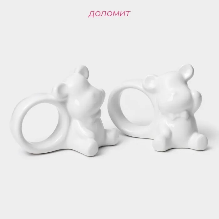 Набор колец для салфеток Доляна «Стильный мишка», 2 предмета 9.6×4.8×7.2 см, белый — Характеристики