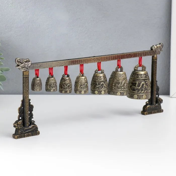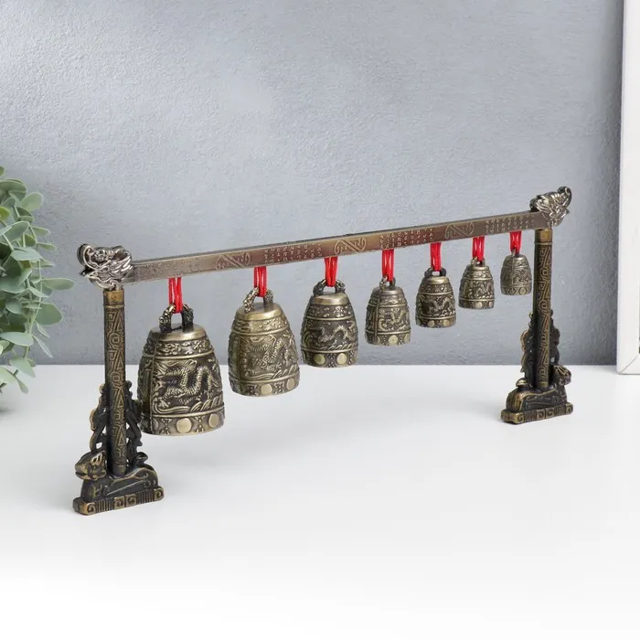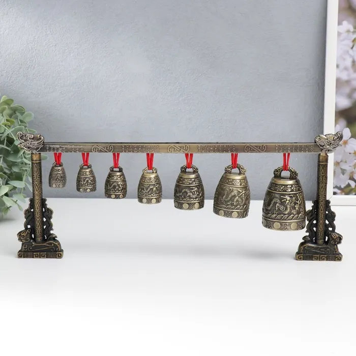 Набор колокольчиков на подставке 7 шт. «Звучное пение», металл легкий, воздушный амулет, который пришёл к нам из древнего Востока. Сегодня он стал достаточно распространённым оберегом не только квартир, но и офисных помещений. Помните, все сувениры и амулеты, представленные в нашем каталоге «восточные сувениры» имеют свое значение и кроют в себе сакральный смыл.
