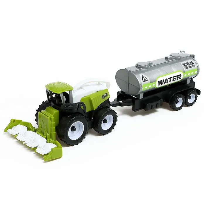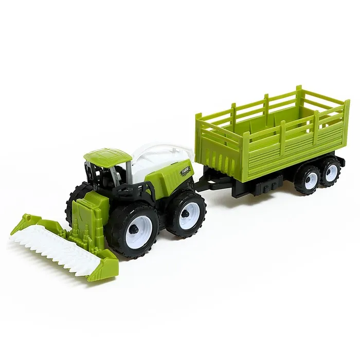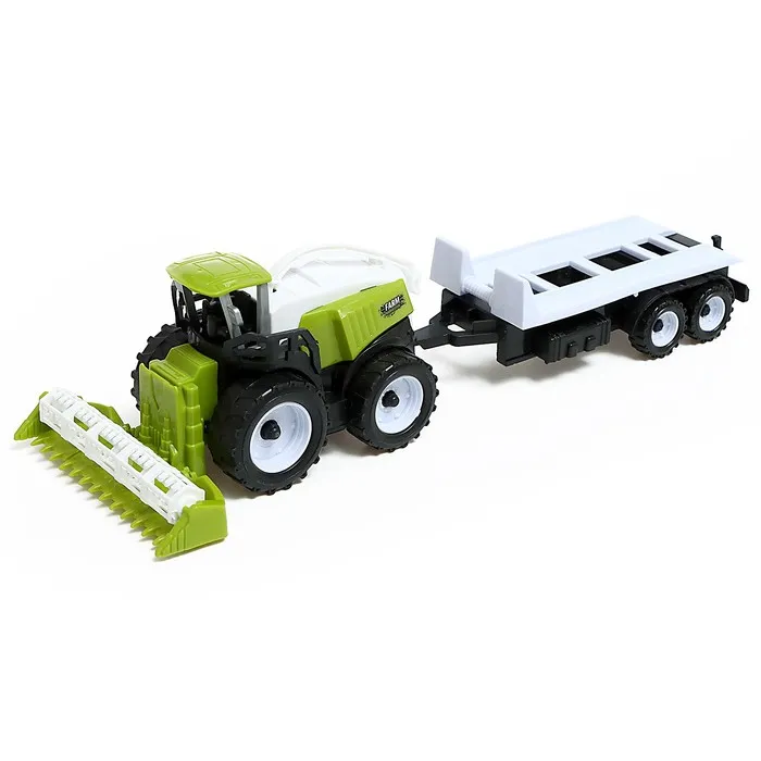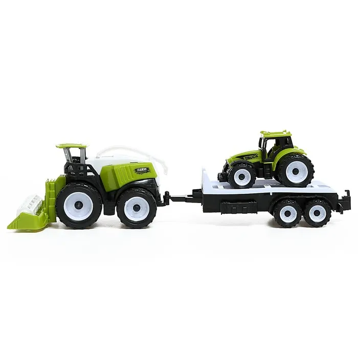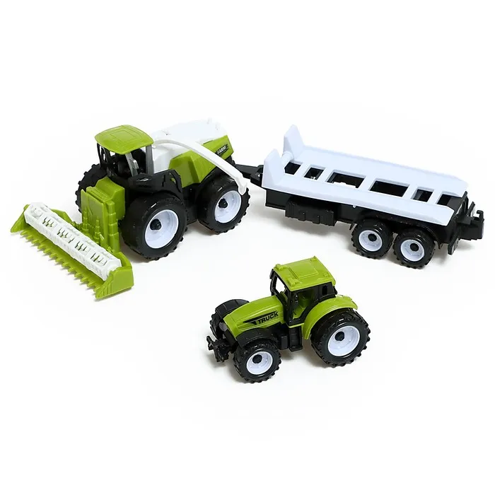 С этим набором каждый ребёнок сможет создать свою собственную ферму. Благодаря простому принципу запуска машинки легко использовать даже самым маленьким участникам. Прицепы делают игру более реалистичной, а разнообразие моделей позволяет придумывать разные сценарии игры.
