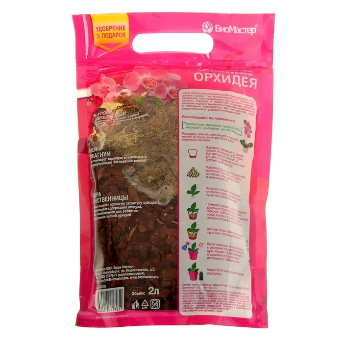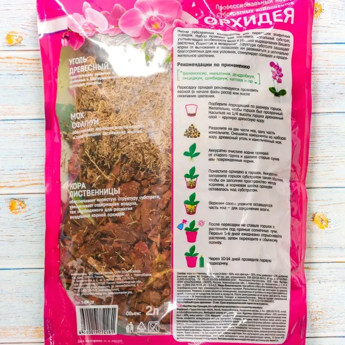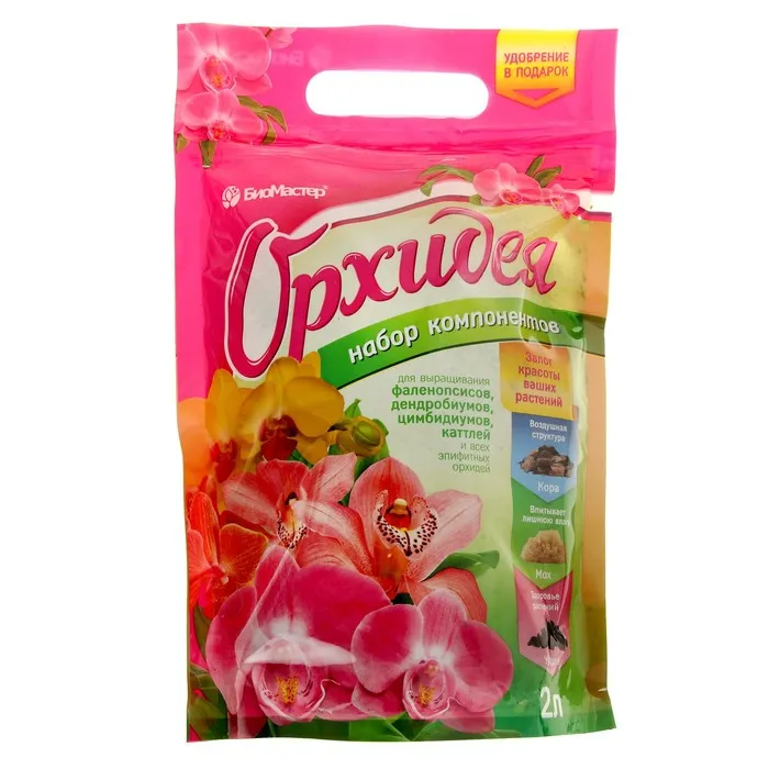 Набор субстратных компонентов для пересадки эпифитных орхидей. Состоит из высококачественных натуральных материалов: коры лиственницы, мха сфагнума и угля древесного. Пористая и воздушная структура субстрата защищает корни от вымокания и позволяет им развиваться в оптимально благоприятных для них условиях, стимулирует обильное и продолжительное цветение.