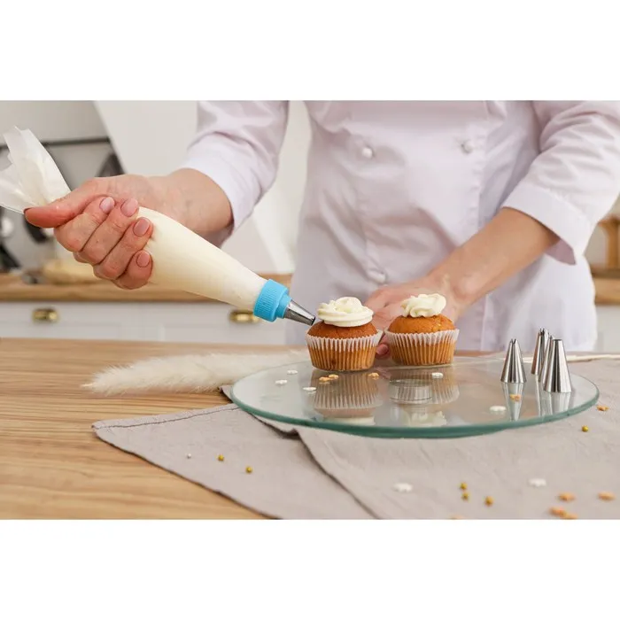 Набор предназначен для украшения выпечки и готовых кондитерских изделий. Наполните мешок кремом, выберите насадку — и приступайте к созданию кулинарного шедевра!