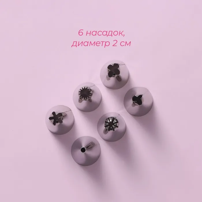Набор кондитерский Доляна, 7 предметов: мешок 24 см, 6 насадок d=1.8 см, насадки и МИКС — Характеристики