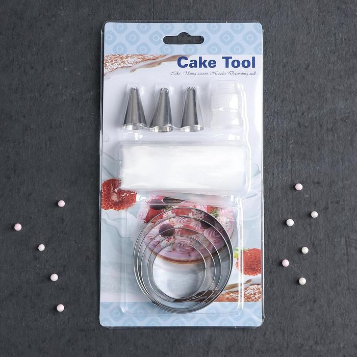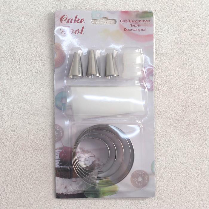 Набор кондитерский «Лориэн», 10 предметов: форма для выпечки 5 шт «Круг», 3 насадки, адаптер, мешок — Характеристики