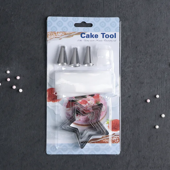 Набор также включает 3 насадки, адаптер и кондитерский мешок, что делает его идеальным выбором для декорирования тортов, печенья и других десертов. Изготовленные из нержавеющей стали и прочного пластика, эти инструменты гарантируют долговечность и простоту ухода.