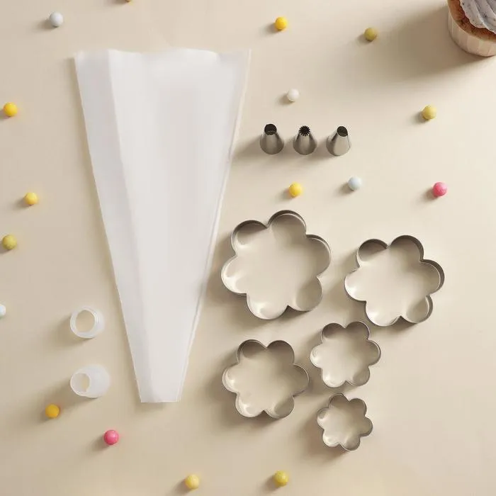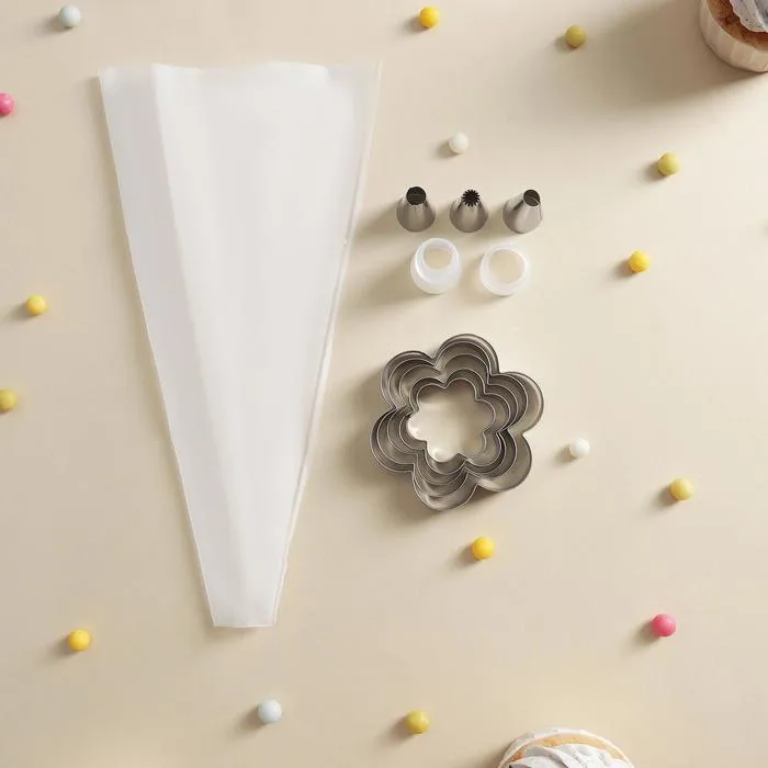 Пусть ваши кулинарные шедевры становятся еще прекраснее с набором для выпечки, который сочетает в себе качество и удобство. Этот кондитерский комплект включает в себя 10 предметов, среди которых 5 форм для выпечки в виде цветка, 3 многофункциональные насадки, адаптер и кондитерский мешок. Прочные материалы — пластик и нержавеющая сталь — обеспечат долгий срок службы и легкость в уходе.