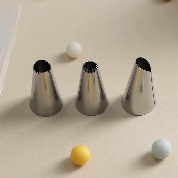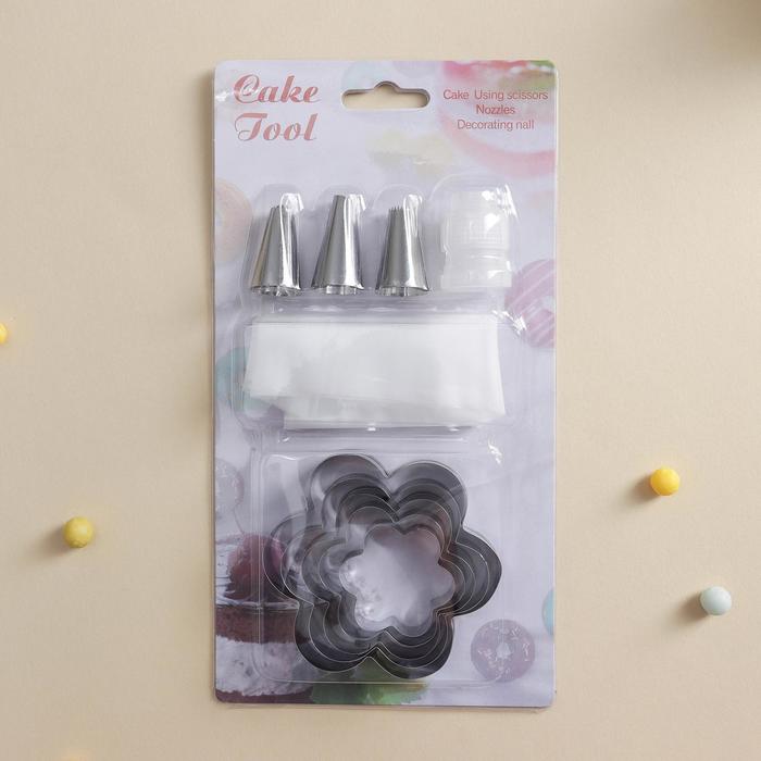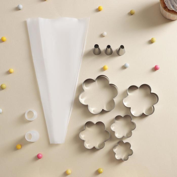 Набор кондитерский «Лориэн», 10 предметов: форма для выпечки «Цветок» 5 шт, 3 насадки, адаптер, мешок — Характеристики