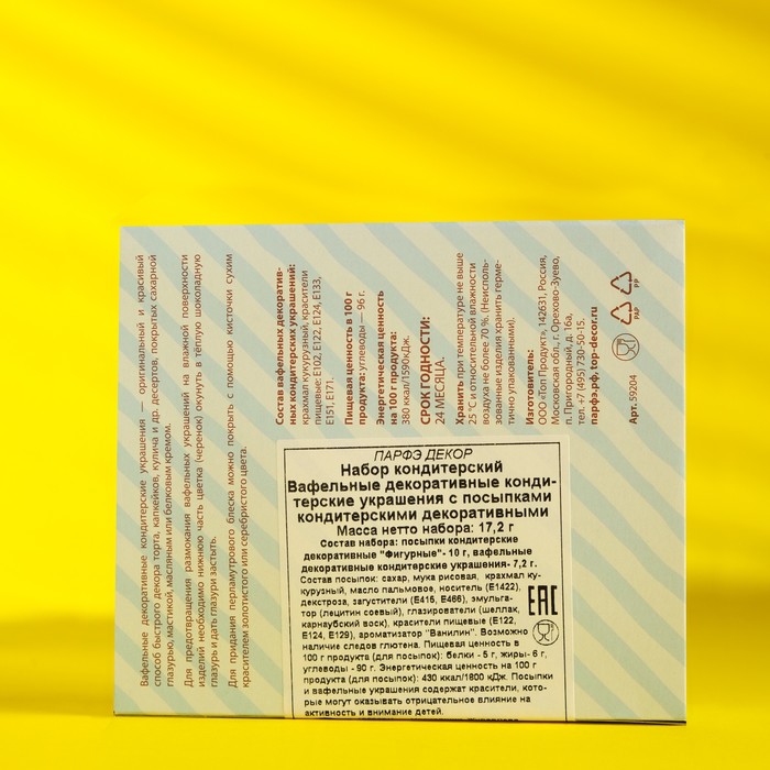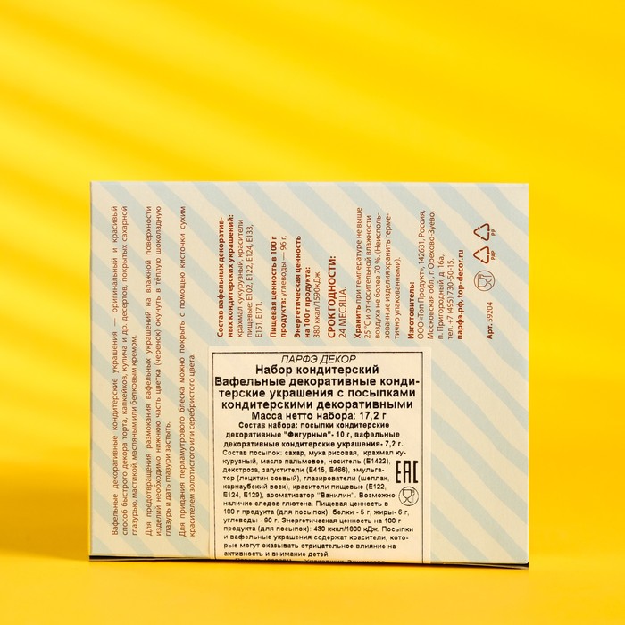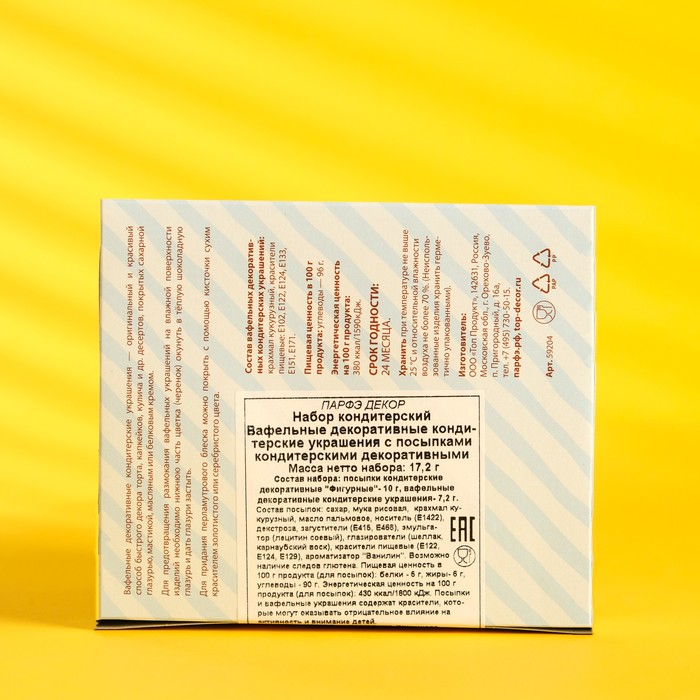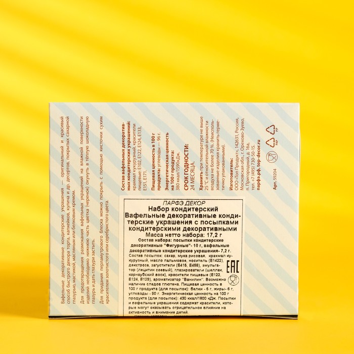 Набор кондитерский «Вафельные украшения с посыпками», 17.2 г, МИКС — Характеристики