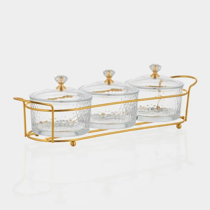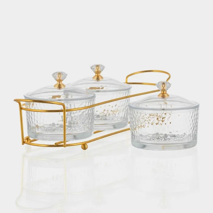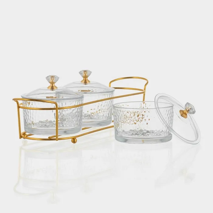 Набор конфетниц «Богема», на подставке 33×9.5×8.5, 3 шт., стекло, цвет металла золотистый — Характеристики