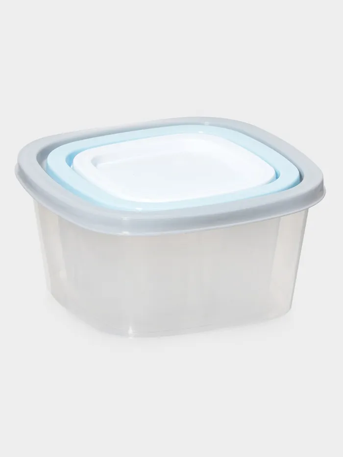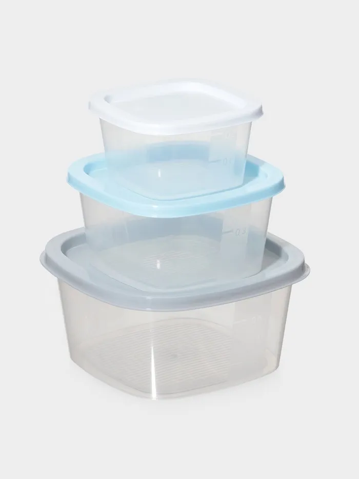 Набор квадратных пищевых контейнеров с крышками разных оттенков — практичное решение для организации хранения продуктов на кухне. В комплект входят ёмкости объёмом 230 мл, 500 мл и 900 мл. Прозрачный пластик позволяет видеть содержимое без открывания, а герметичные крышки надёжно фиксируются, предотвращая проливание.