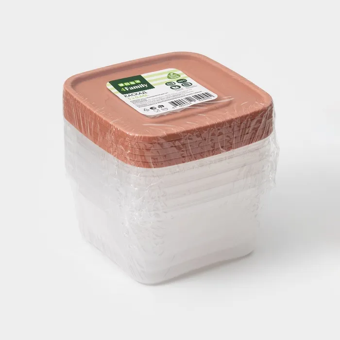Набор контейнеров пищевых Доляна, 5 шт., 460 мл, 11×11×11 см, квадратные, прозрачные, крышки МИКС — Характеристики