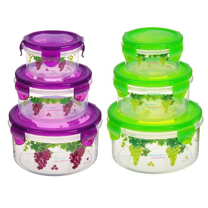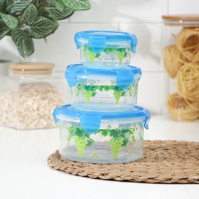 Набор контейнеров пластиковых «Виноград», 3 шт: d=8,5; 11; 14 см, цвет МИКС — Характеристики