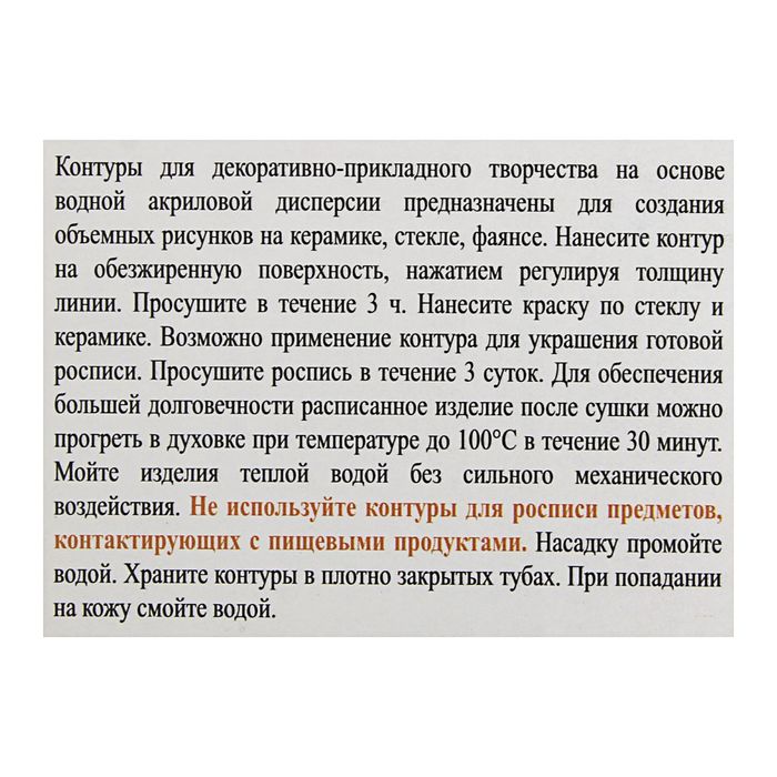 Используется для создания объемных рисунков на различных поверхностях: керамике, стекле, фаянсе. Отлично подходят для декорирования стеклянных и керамических поверхностей красками, имитируя витражи.