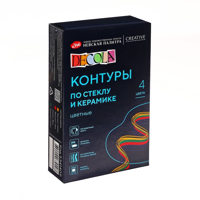 Набор контуров по стеклу и керамике, набор 4 цвета х 18 мл, ЗХК Decola, (5341409) — Характеристики