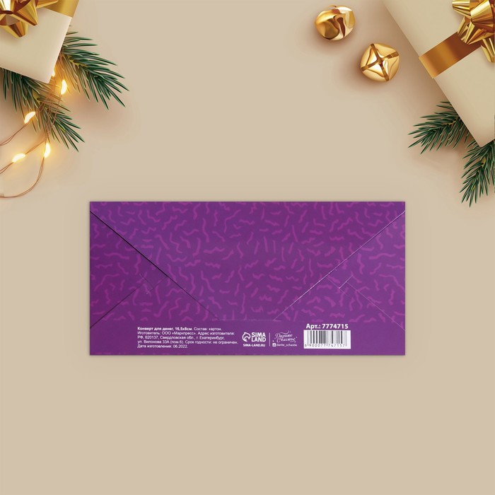Конверт для денег «Новогодний подарок», 16,5 х 8 см