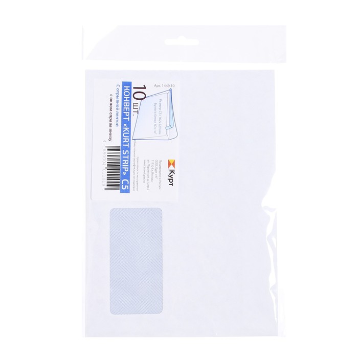 Набор конвертов С5 162 х 229 мм, без подсказа, правое окно, отрывная лента, внутренняя запечатка, 80 г/м2, 10 штук — Характеристики