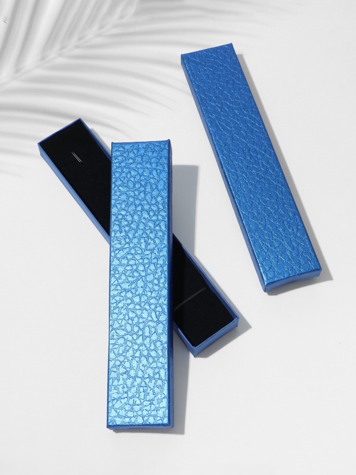 - Однотонная палитра: Мягкий синий цвет с черным внутренним оформлением создает гармоничный контраст, визуально увеличивая ценность упакованного предмета.
