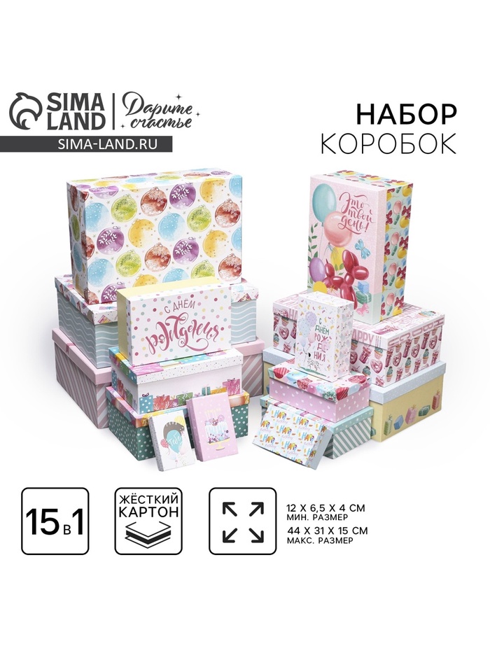 Все размеры коробок: