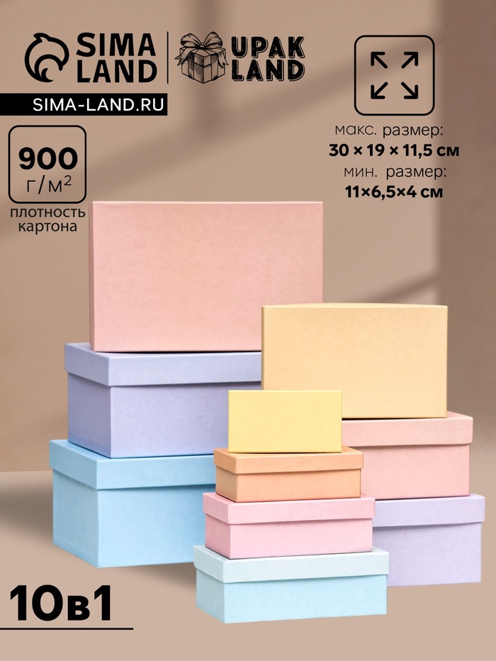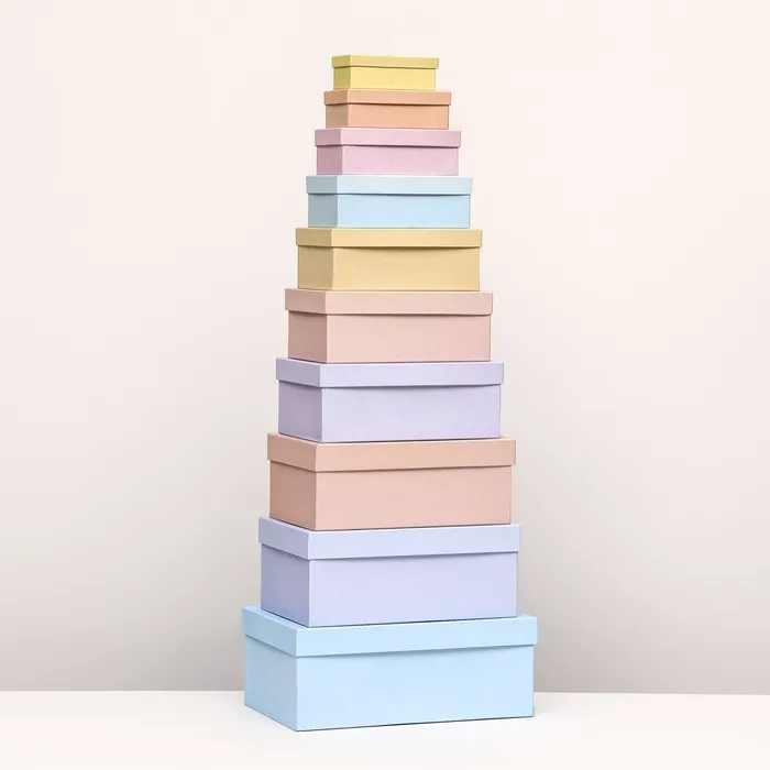 Набор из 10 коробок в нежных оттенках - это идеальное решение для хранения и транспортировки различных предметов, начиная от ювелирных изделий и заканчивая подарками.