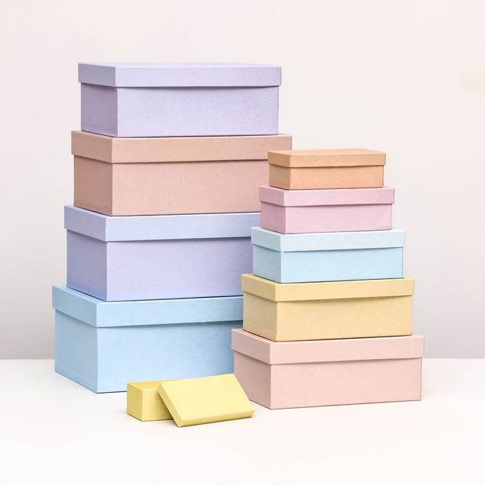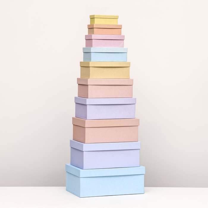Набор из 10 коробок в нежных оттенках - это идеальное решение для хранения и транспортировки различных предметов, начиная от ювелирных изделий и заканчивая подарками.