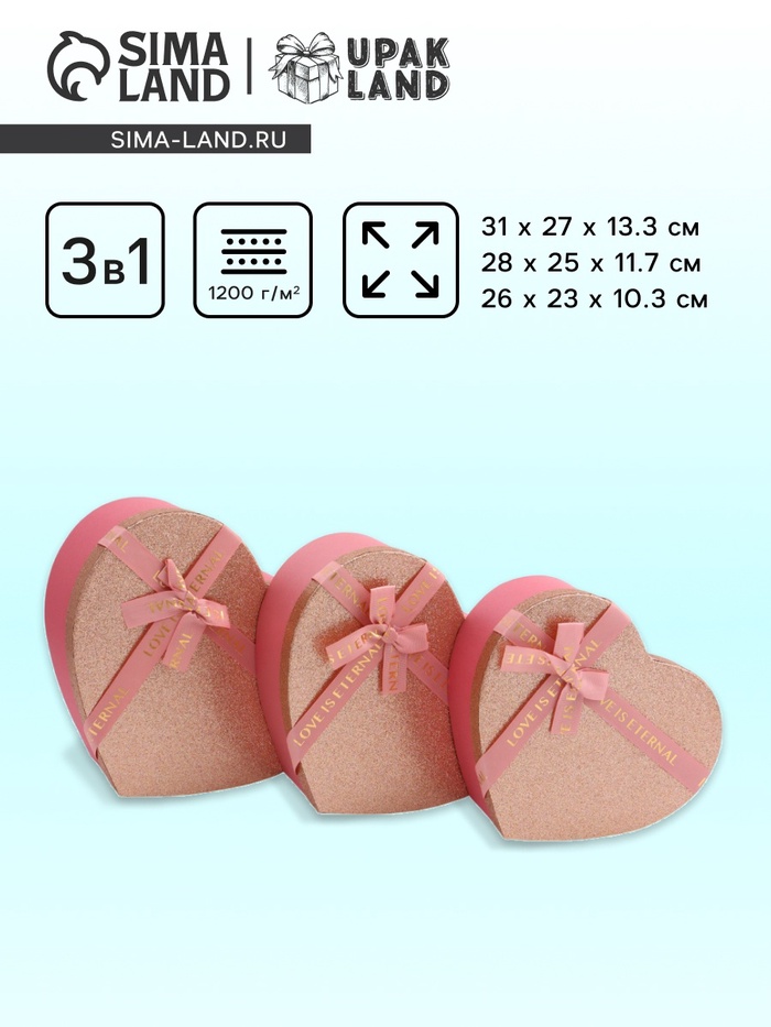 Набор коробок универсальный. Изготовлена из плотного картона. Прекрасно подойдет для оформления подарка, и праздничного декора. Можно использовать для хранения аксессуаров.