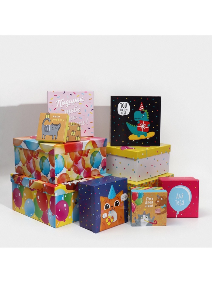 Набор коробок 10 в 1, упаковка подарочная, «Поздравления», 10×10×6‒28×28×15 см — Характеристики