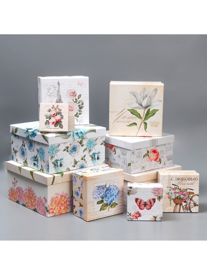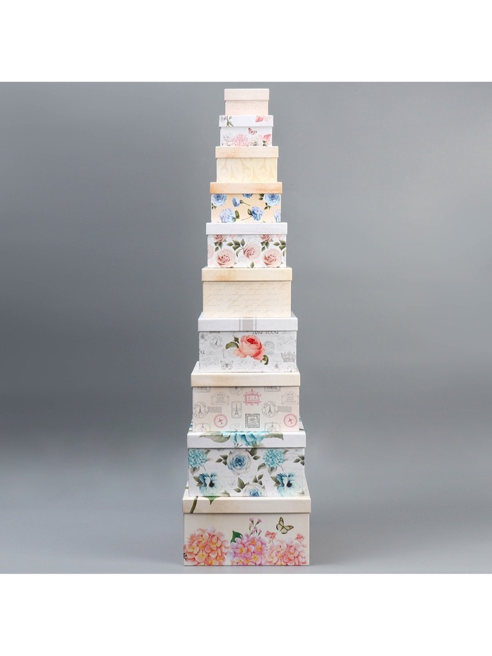 Набор коробок 10 в 1, упаковка подарочная, «Шебби», 10×10×6‒28×28×15 см — Характеристики
