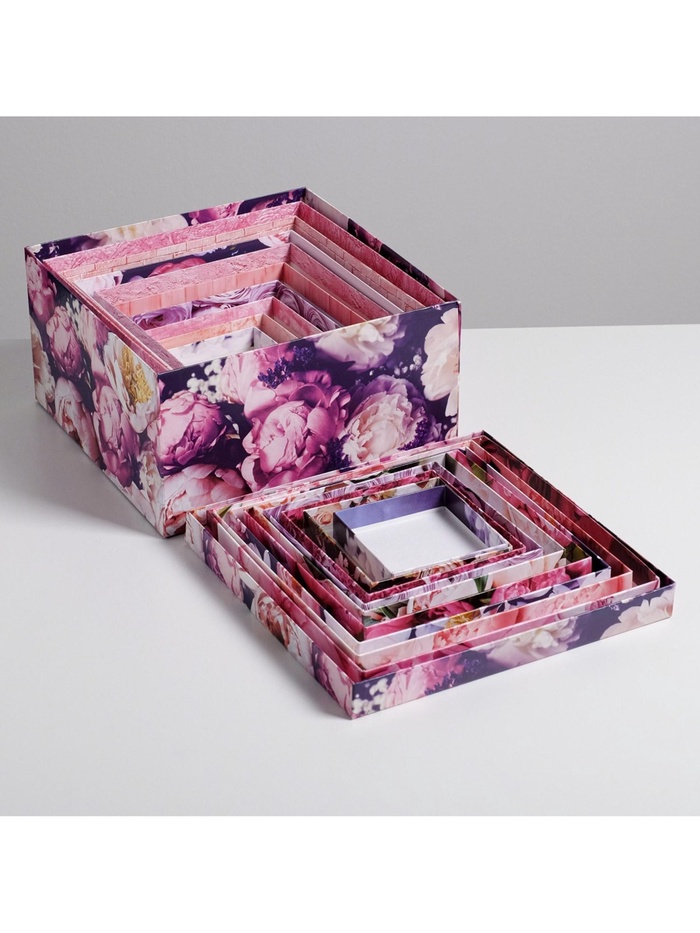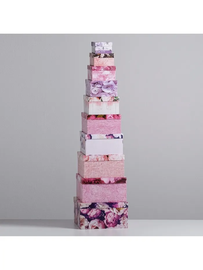 Набор коробок 10 в 1, упаковка подарочная, «Цветочный», 10 х 10 х 6‒28 х 28 х 15 см — Характеристики