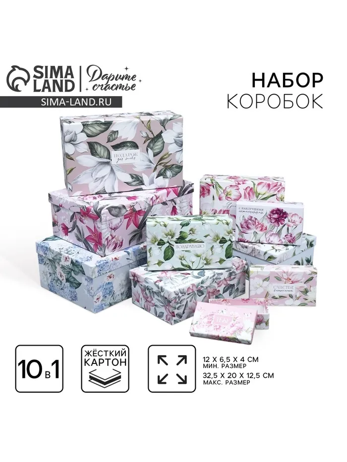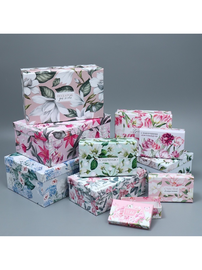 Набор коробок 10 в 1, упаковка подарочная, «Цветочный сад», 12 х 7 х 4 - 32.5 х 20 х 12.5 см — Характеристики