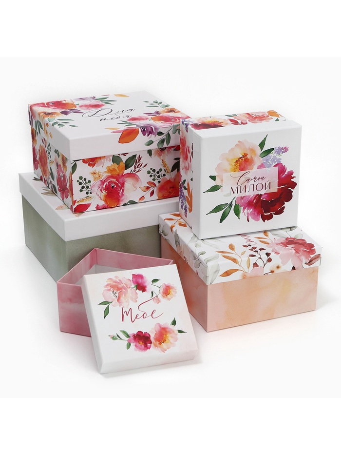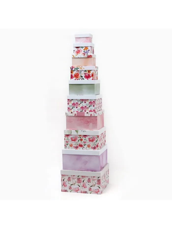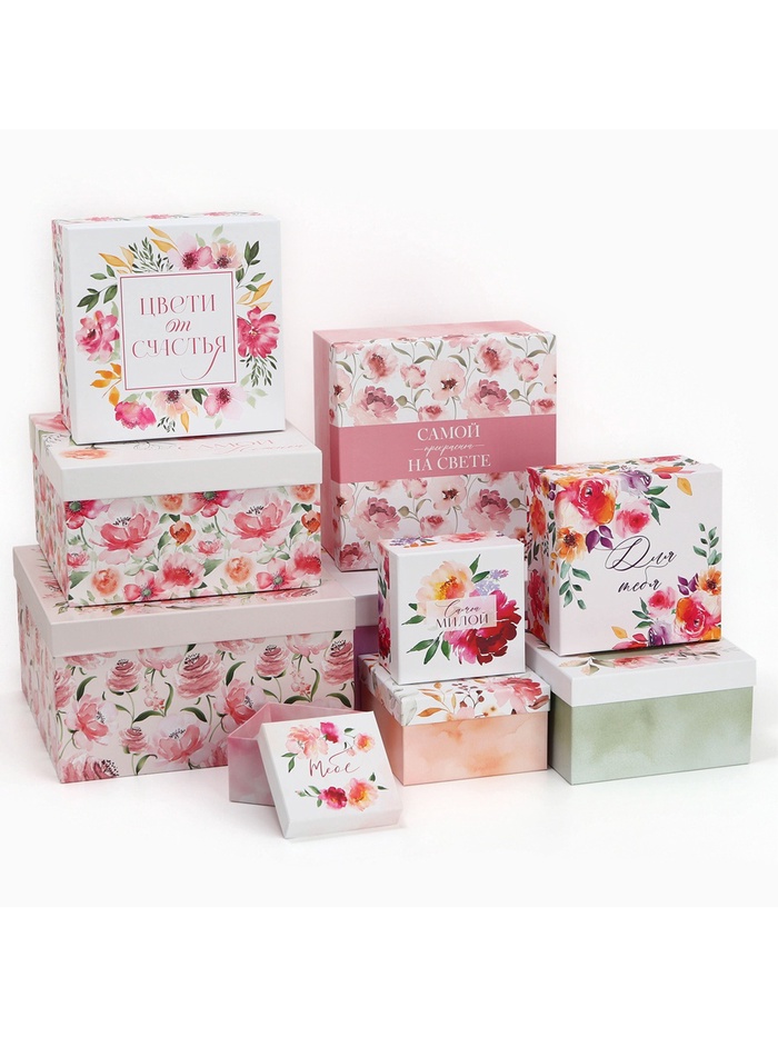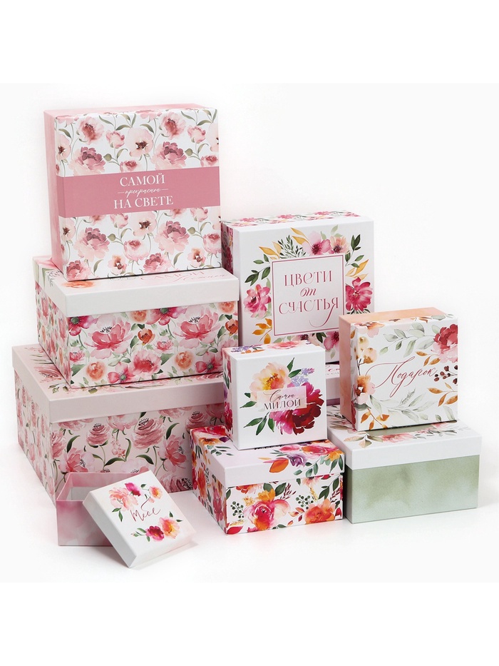 Набор коробок 10 в 1, упаковка подарочная, «Цветы», 10 х 10 х 6‒28 х 28 х 15 см — Характеристики