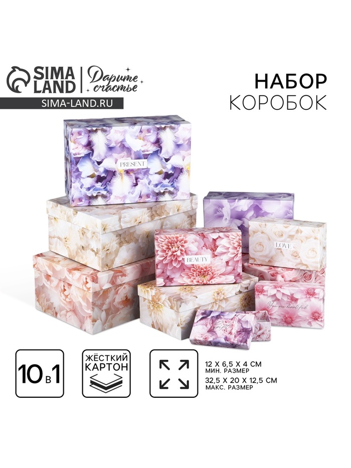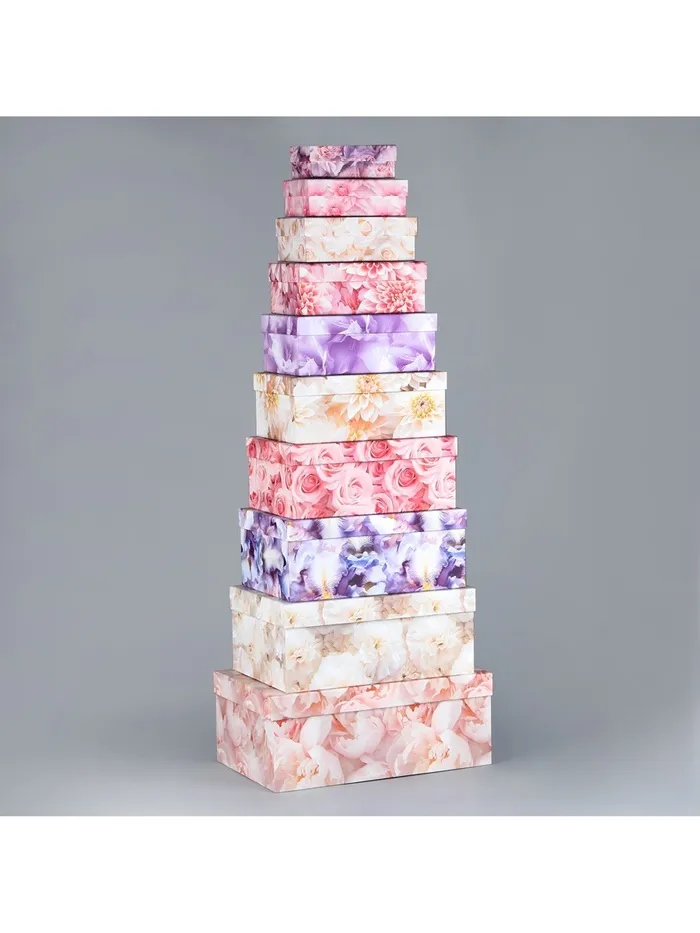 Набор коробок 10 в 1, упаковка подарочная, «Цветы», 12×7×4 - 32.5×20×12.5 см — Характеристики