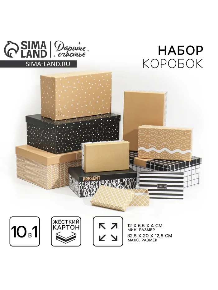 Набор коробок 10 в 1, упаковка подарочная, «Универсальный», 12 х 7 х 4 - 32.5 х 20 х 12.5 см — Характеристики
